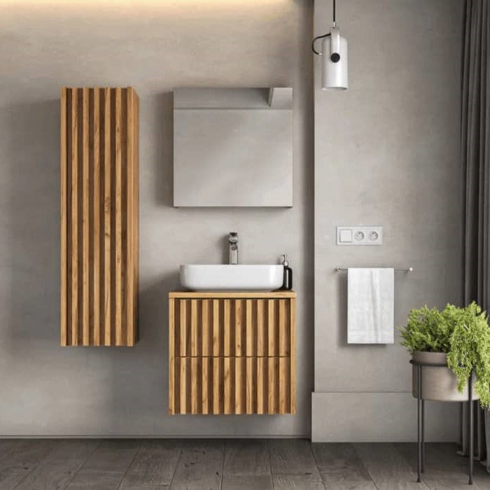 Material. Praviloma so v pogojih visoke vlažnosti najbolj primerne laminirane iverne plošče ali MDF. Kopalniško pohištvo iz tovrstnih materialov izgleda kot naravni les, vendar je na vrhu prekrito z laminirano plastjo, ki ne dopušča, da bi vlaga pokvarila izdelek.