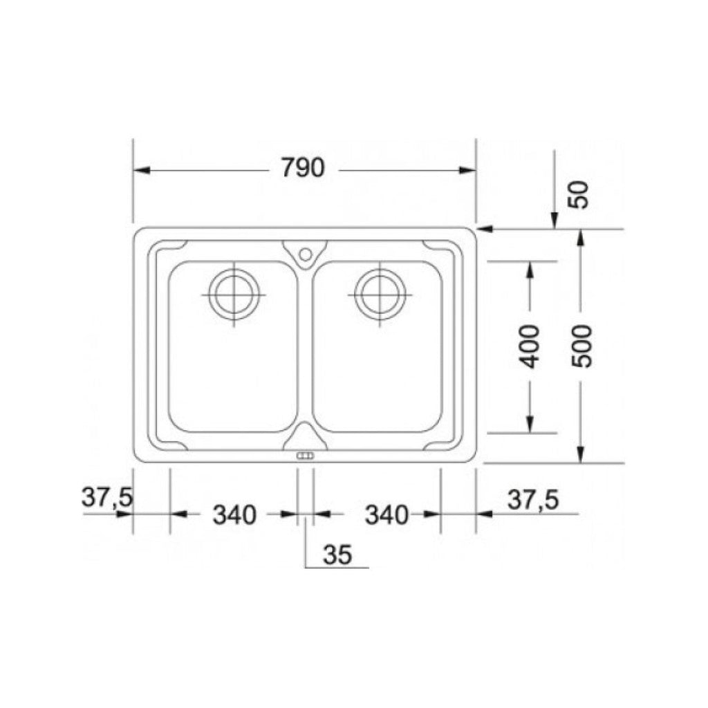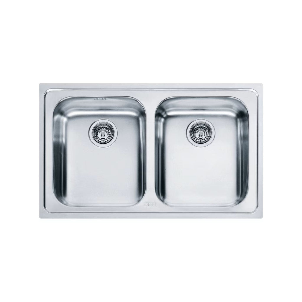 Dvojno kuhinjsko pomivalno korito iz nerjavnega jekla. Ustreza za vgradnjo v omarico 800 mm.