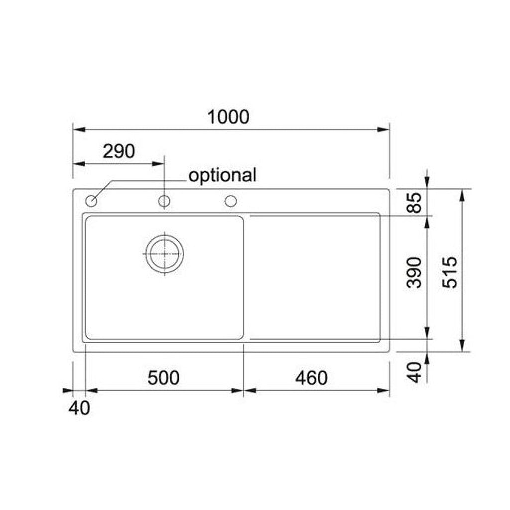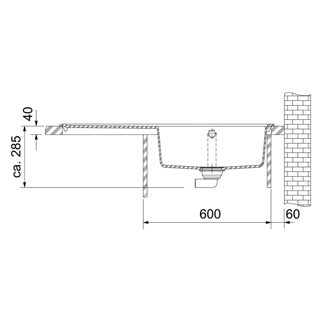 Enojno kuhinjsko pomivalno korito iz umetnega kamna (granit). Ustreza za vgradnjo v omarico 600 mm.