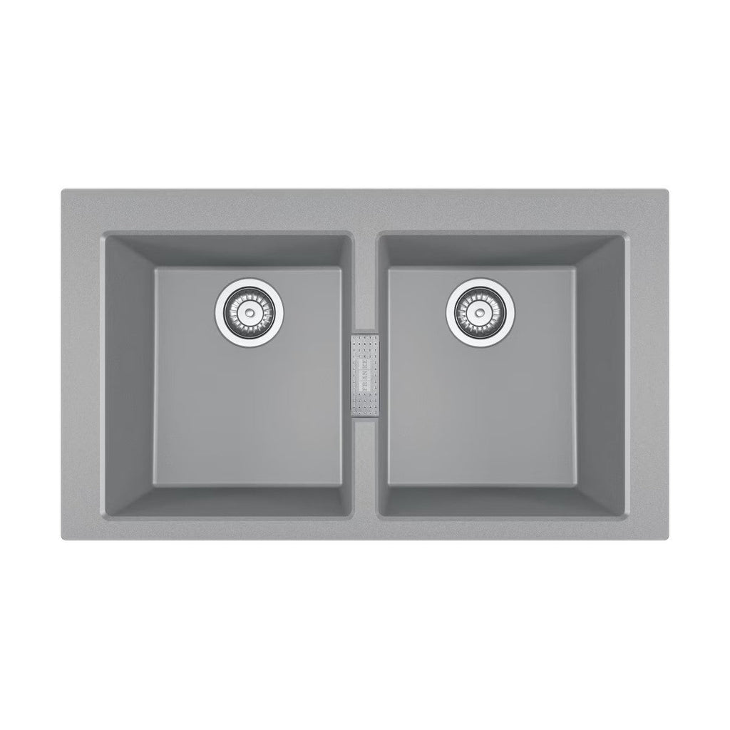 Dvojno kuhinjsko pomivalno korito iz umetnega kamna (tectonite). Ustreza za vgradnjo v omarico 800 mm.