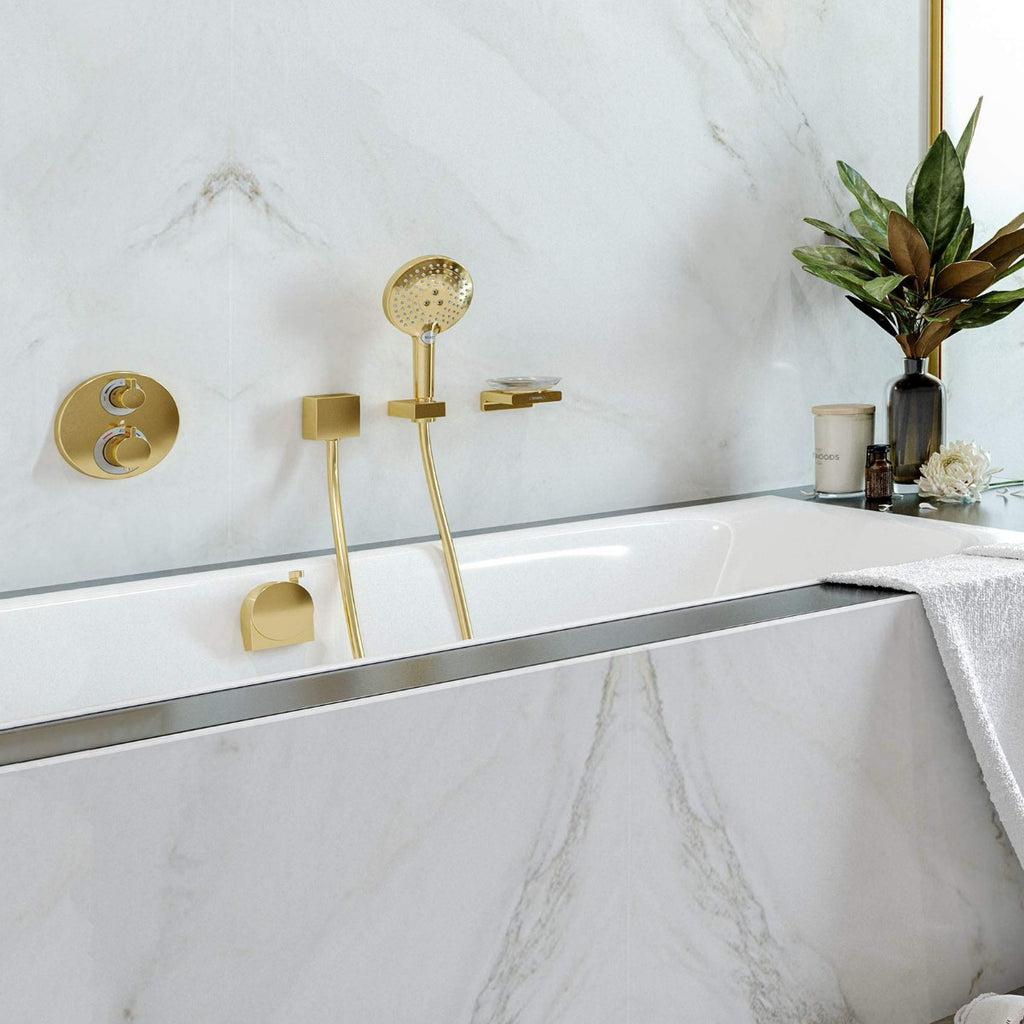 Termostatska podometna armatura (pokrivna plošča) za tuš, brez tuš seta in podometnega dela. 2 izhoda.