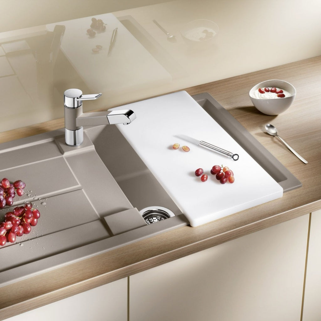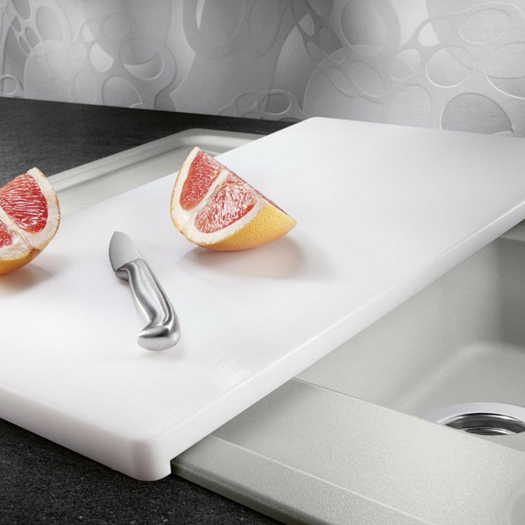 Priročna deska za rezanje iz visokokakovostne, varne bele plastike. Zasnovano za postavitev nad pomivalno korito. Primerno za pomivalna korita širine 50 cm. s klasično nadpultno namestitvijo.
