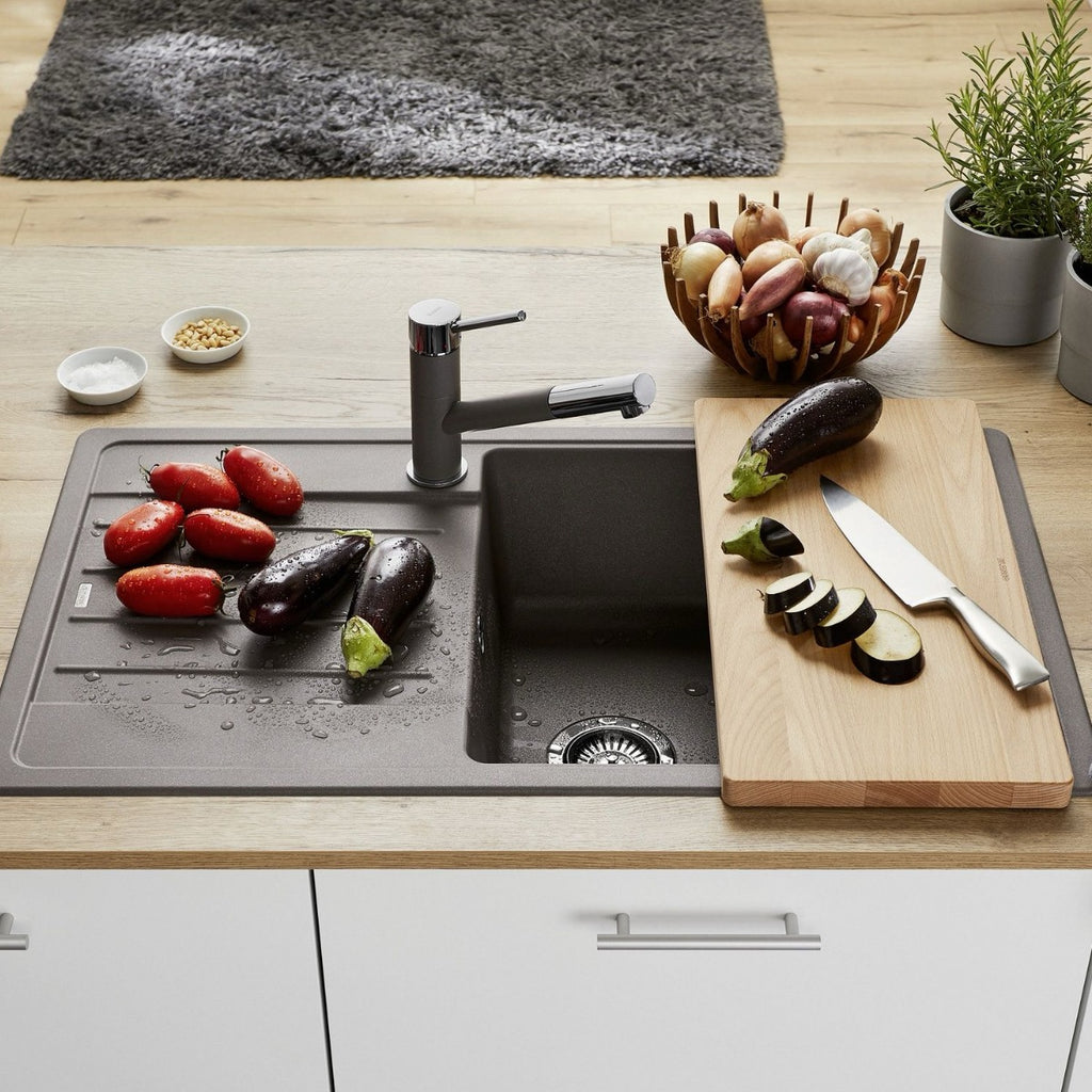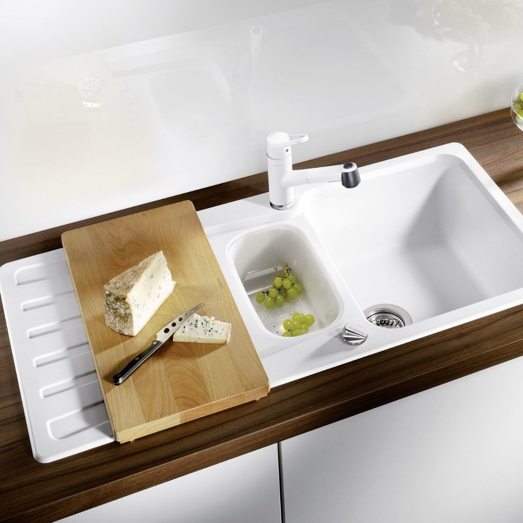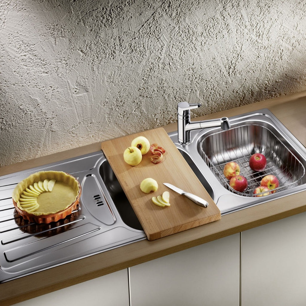 Priročna deska za rezanje iz masivnega bukovega lesa. Zasnovano za postavitev nad pomivalno korito. Primerno za pomivalna korita širine 50 cm. s klasično nadpultno namestitvijo.