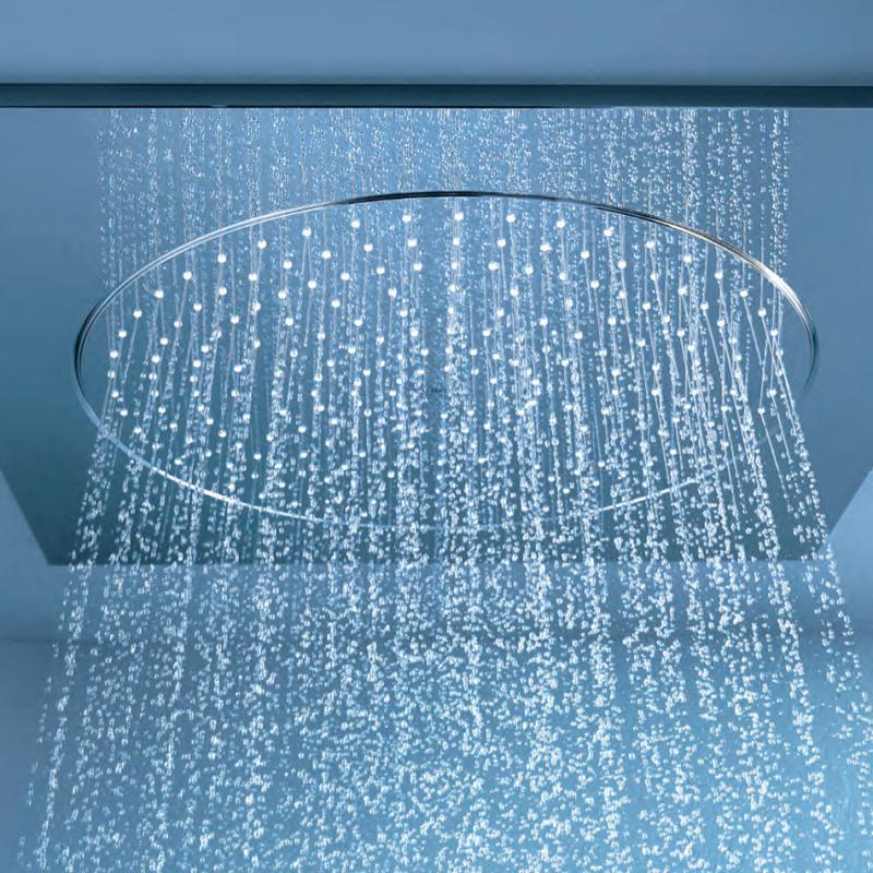 Nadglavna prha velikega premera, kromirana, za stropno montažo. 1 način pršenja: Rain.
