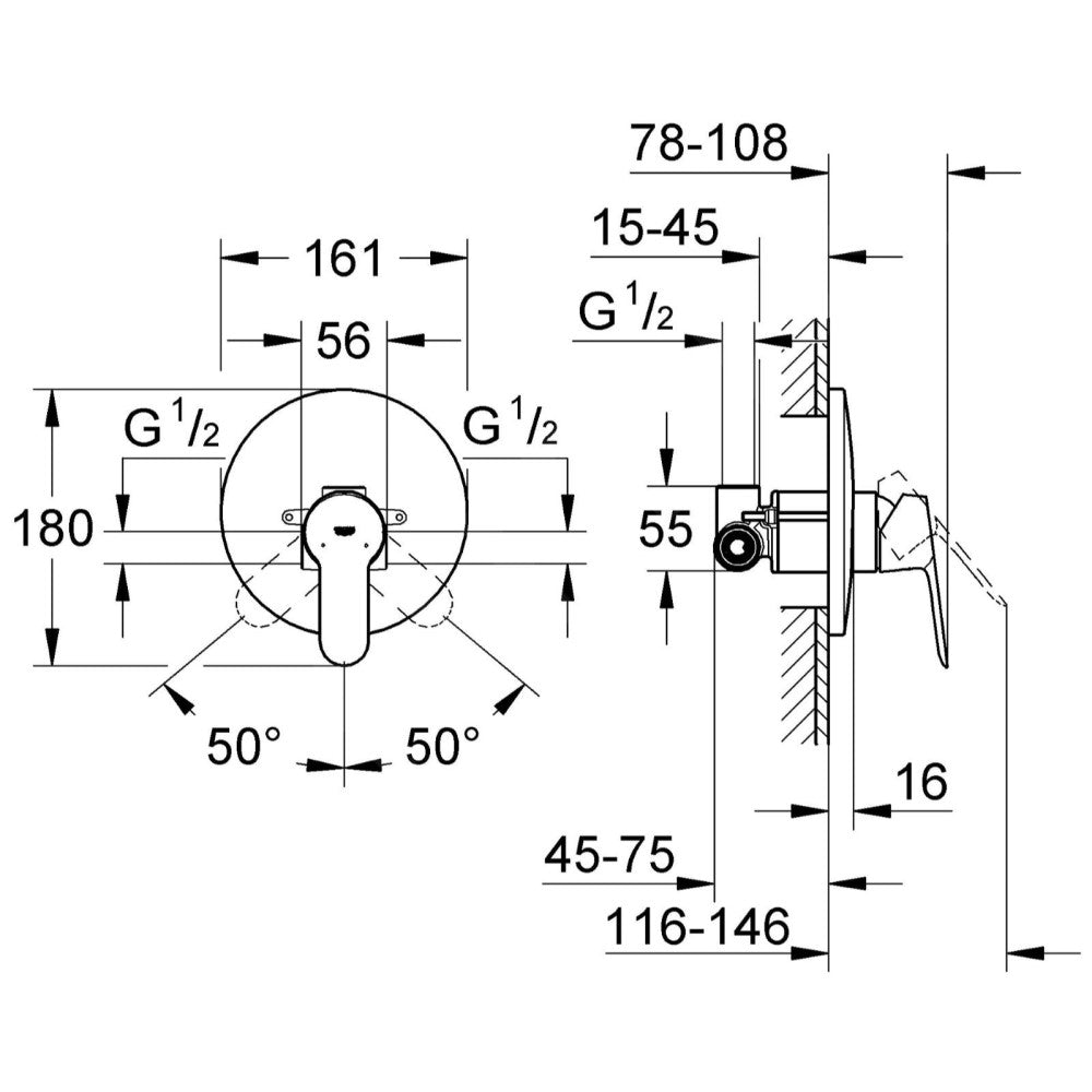 • Oprema - Vključno s podometnim delom 33964000keramična kartuša GROHE Long-Life® 46 mm