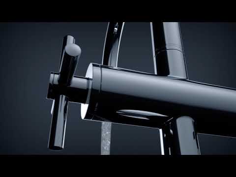 - Oprema - Z zgornjim delom sifona Push-Open 1/4''; SilkMove® keramična kartuša 28 mm; kovinska ročka; vrtljiv izliv; nastavljiv omejevalnik temperature; gibljive priključne cevi