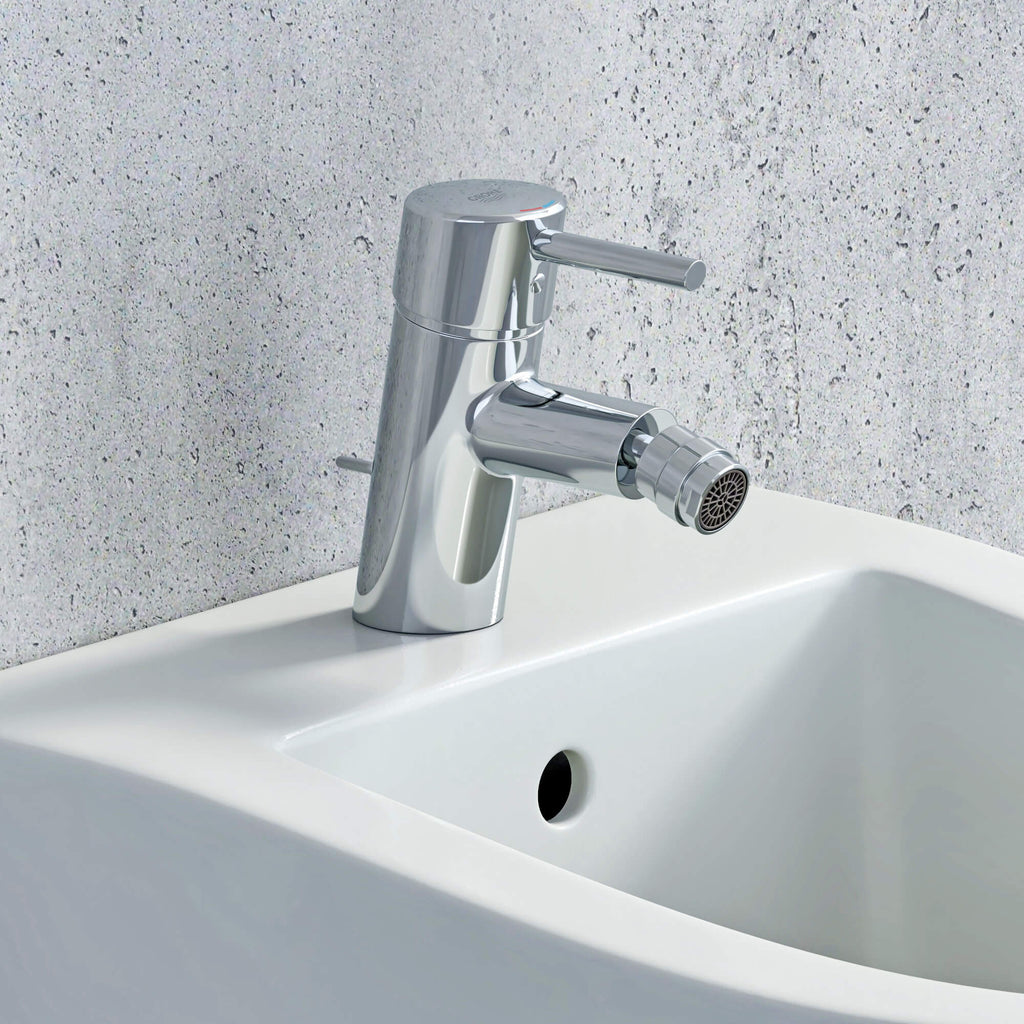 Enoročna armatura za bide, z ročajem, z zgornjim delom sifona.