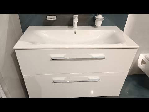 Umivalnik z omarico bele barve, ki zajema keramični umivalnik in omarico na 2 predala. Sifon in armaturo je treba dokupiti.
