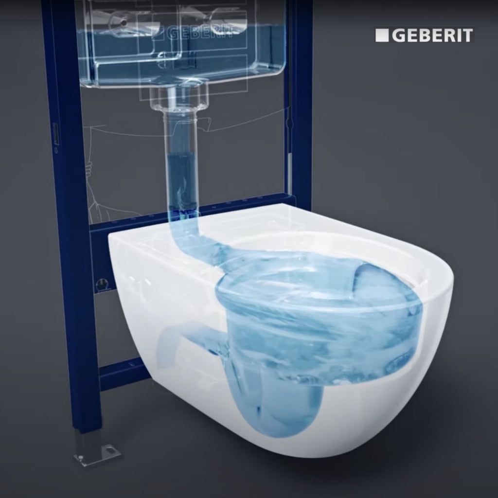 Viseča brezrobna WC školjka z inovativnim sistemom splakovanja TurboFlush z asimetričnim usmerjanjem toka vode.