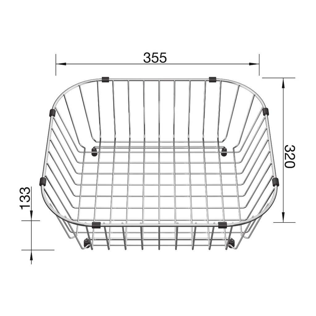 Univerzalna žična košara iz nerjavečega jekla z dimenzijami 355 × 320 x 133 mm.