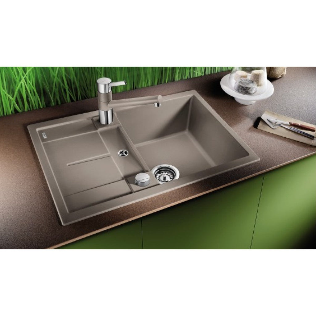 Enojno kuhinjsko pomivalno korito iz umetnega kamna (Silgranit® PuraDur® - 80% naravnega granita). Ustreza za vgradnjo v omarico 450 mm.