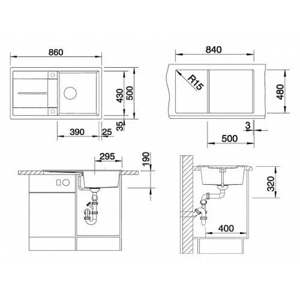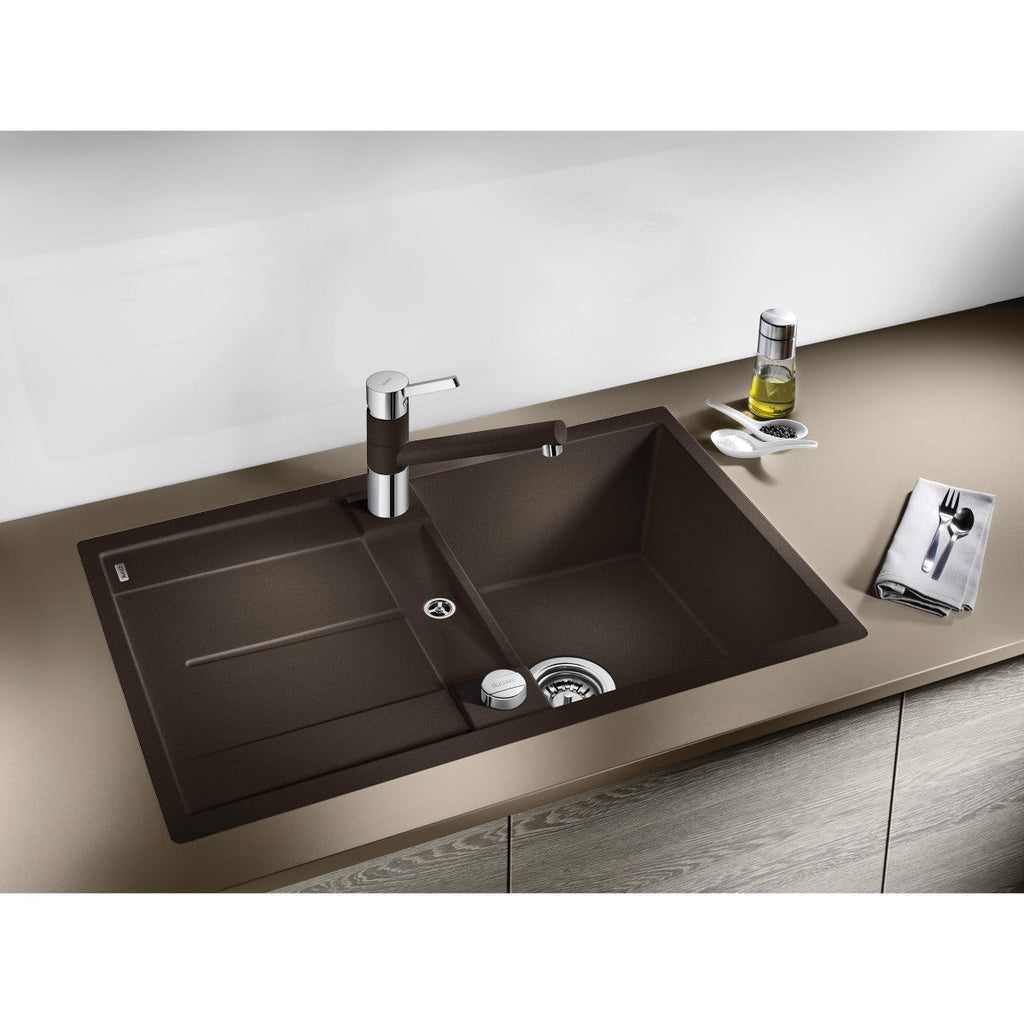 Enojno kuhinjsko pomivalno korito iz umetnega kamna (Silgranit® PuraDur® - 80% naravnega granita). Ustreza za vgradnjo v omarico 500 mm.