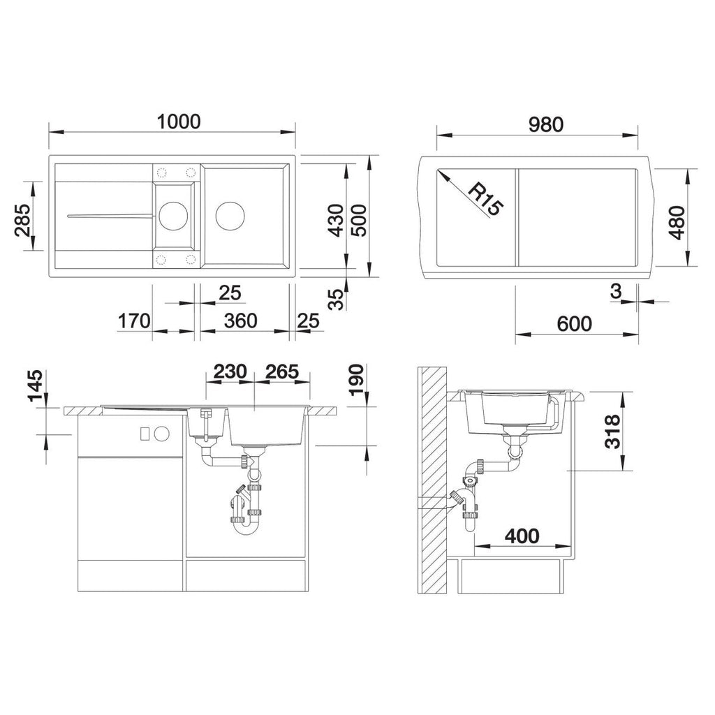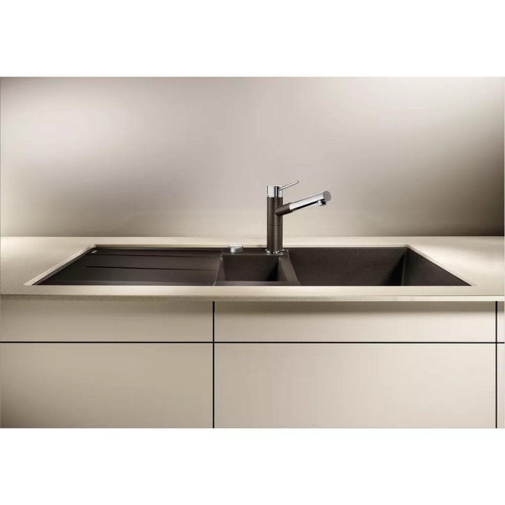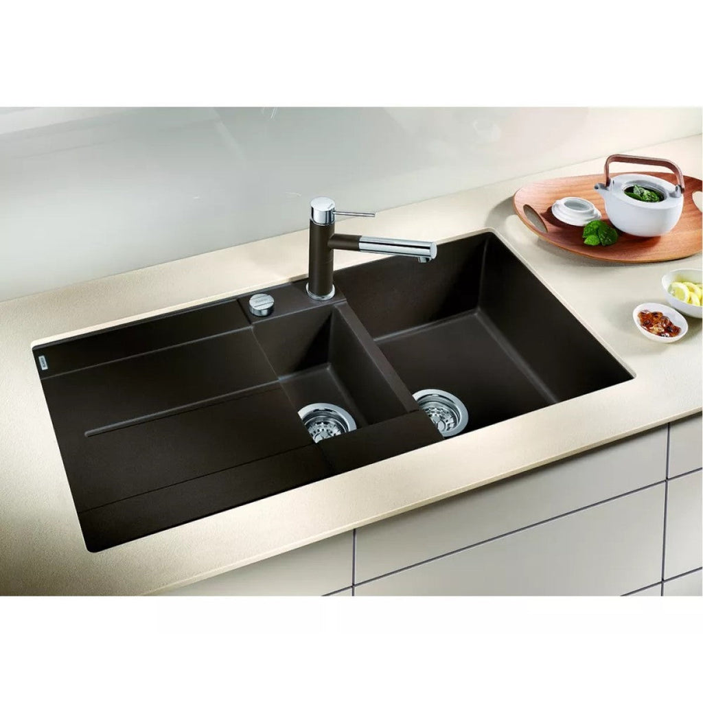 Dvojno kuhinjsko pomivalno korito iz umetnega kamna (Silgranit® PuraDur® - 80% naravnega granitа). Ustreza za vgradnjo v omarico 600 mm.