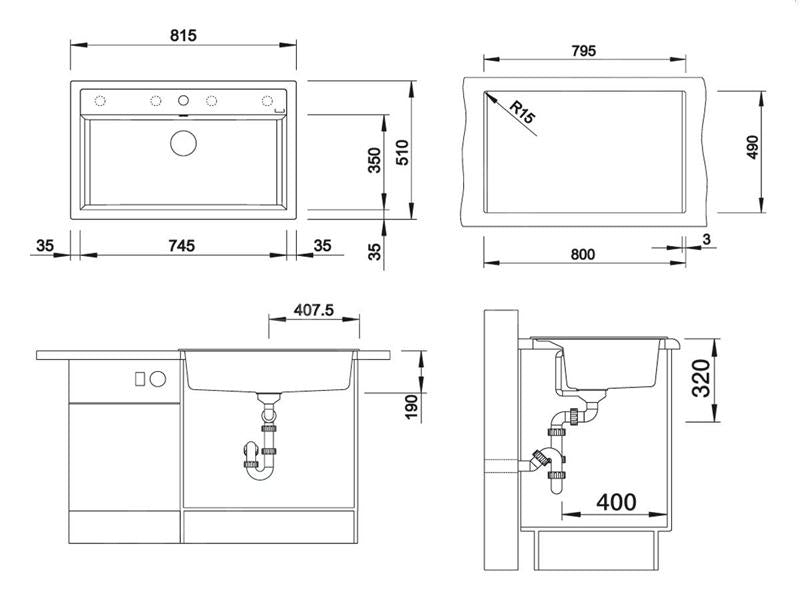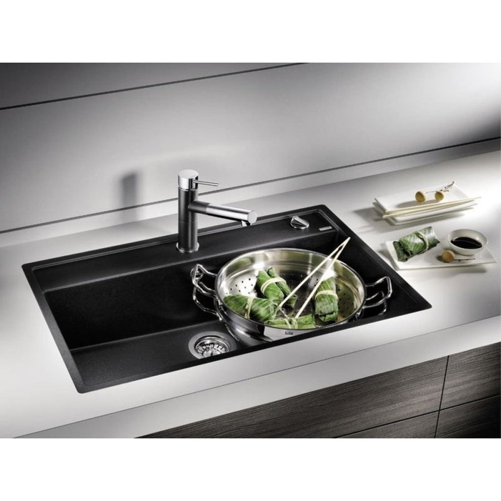 Enojno kuhinjsko pomivalno korito iz umetnega kamna (Silgranit® PuraDur® - 80% naravnega granita). Ustreza za vgradnjo v omarico 800 mm.