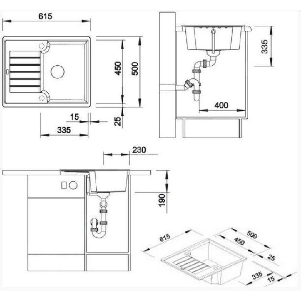 Enojno kuhinjsko pomivalno korito iz umetnega kamna (Silgranit® PuraDur® - 80% naravnega granita). Ustreza za vgradnjo v omarico 400 mm.