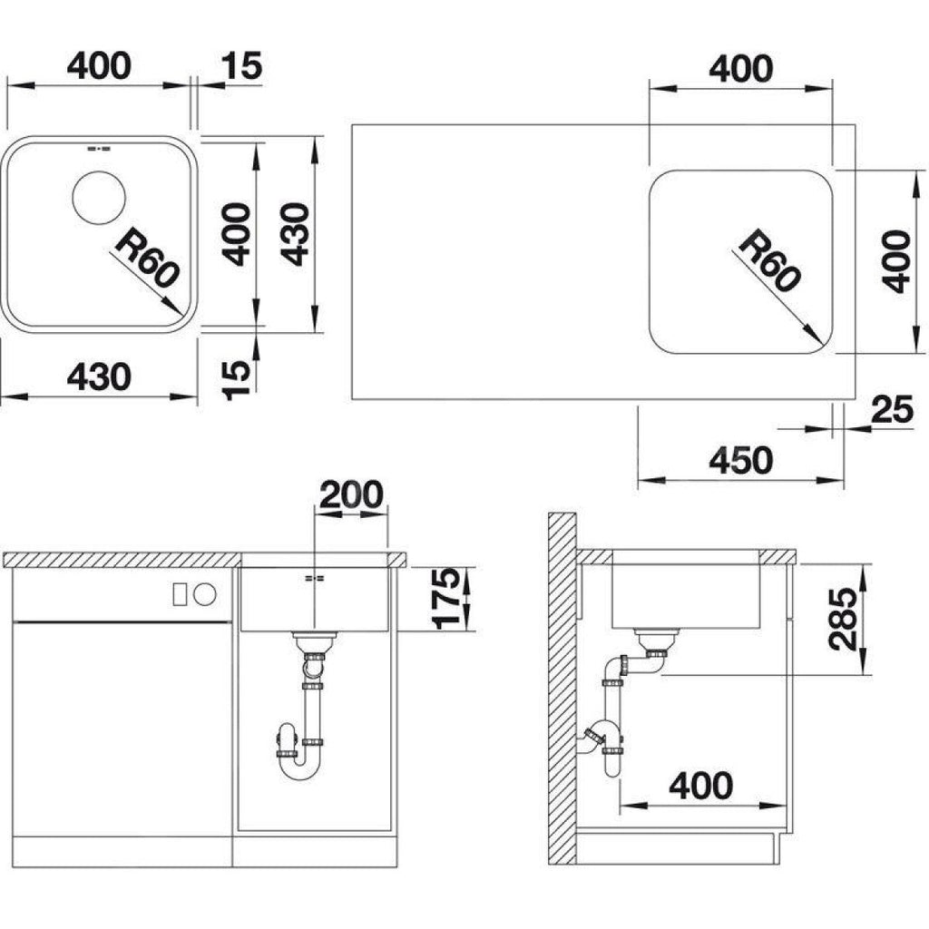 518201 Blanco Supra 400-U pomivalno korito iz nerjavnega jekla