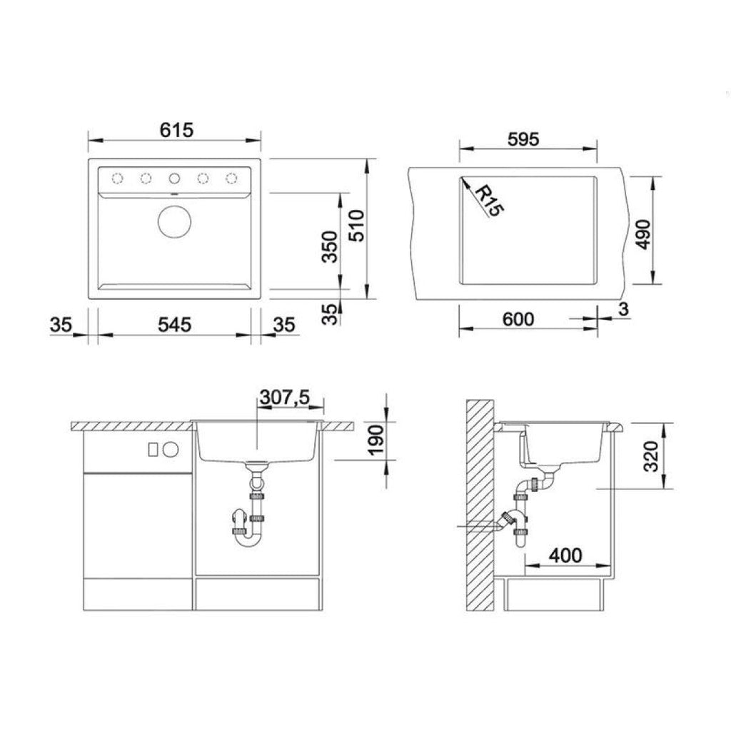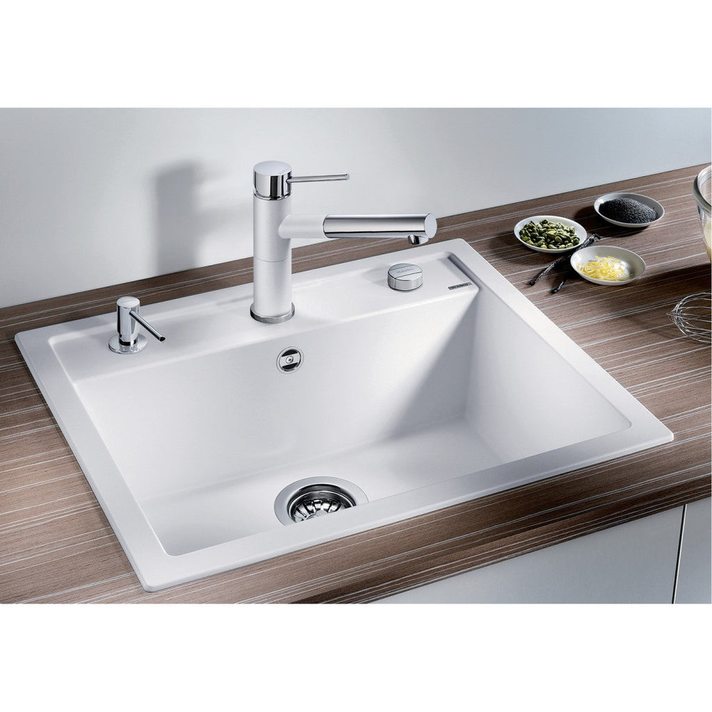 Enojno kuhinjsko pomivalno korito iz umetnega kamna (Silgranit® PuraDur® - 80% naravnega granita). Ustreza za vgradnjo v omarico 600 mm.