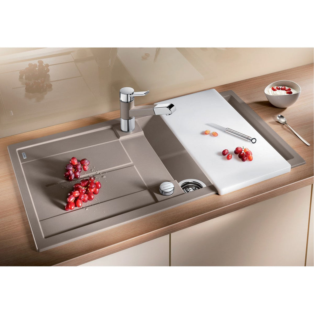 Enojno kuhinjsko pomivalno korito iz umetnega kamna (Silgranit® PuraDur® - 80% naravnega granita). Ustreza za vgradnjo v omarico 500 mm.