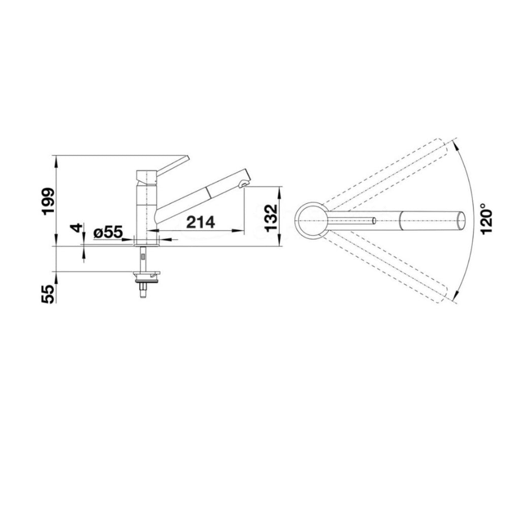 Enoročna vrtljiva (do 120°) armatura za umivalnik, stoječa, z ročajem.