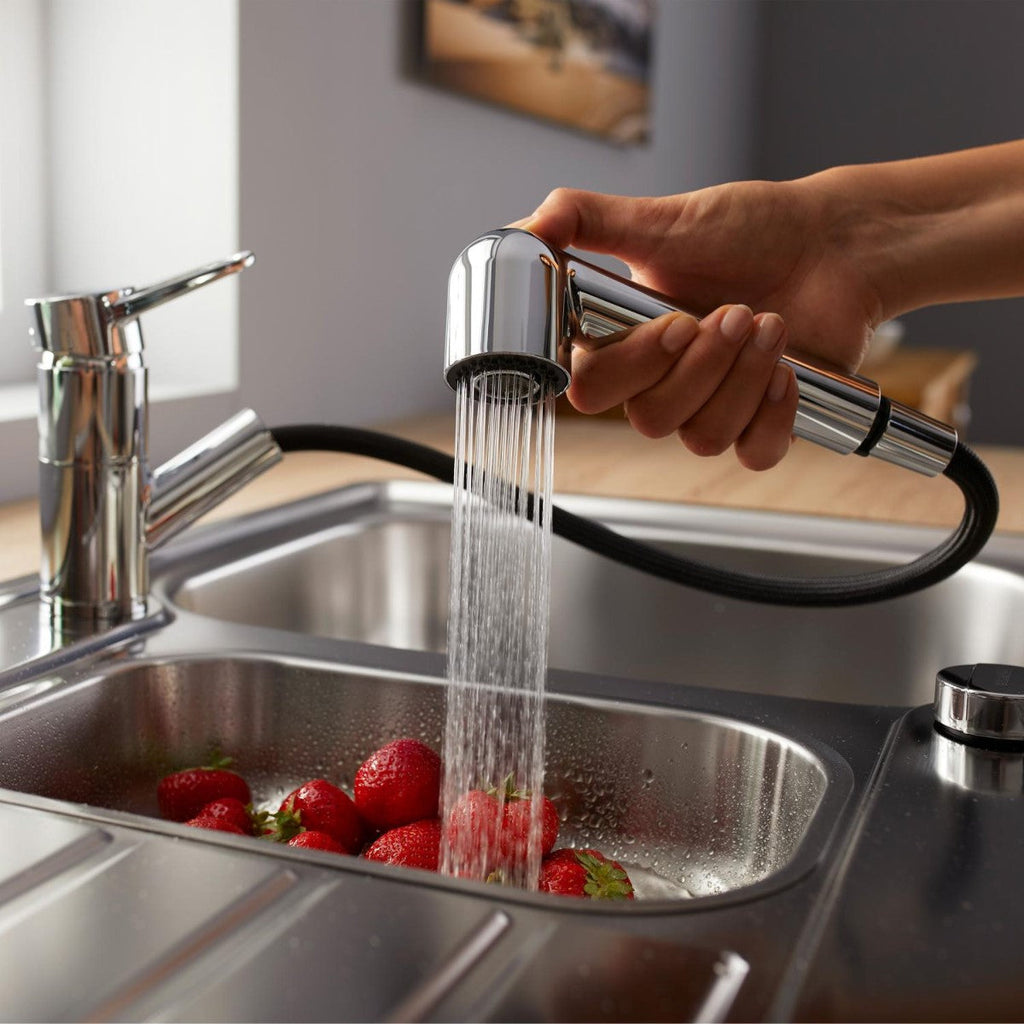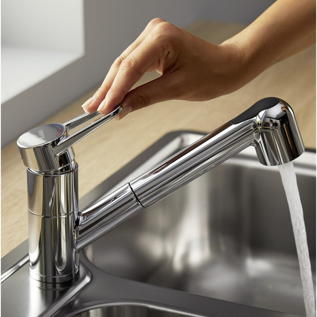 Enoročna vrtljiva (do 180°) izvlečna armatura za umivalnik, stoječa, z ročajem.