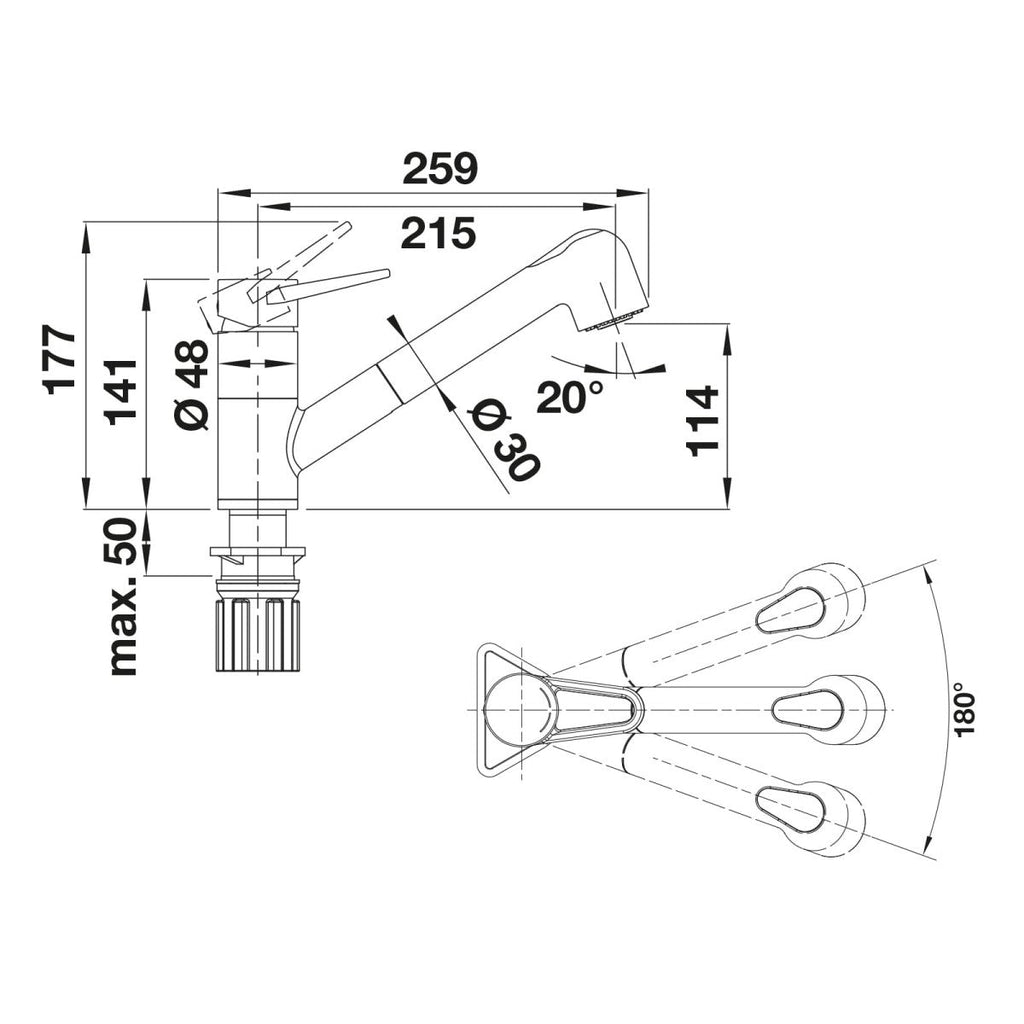 - Dolžina izliva - 215 mm