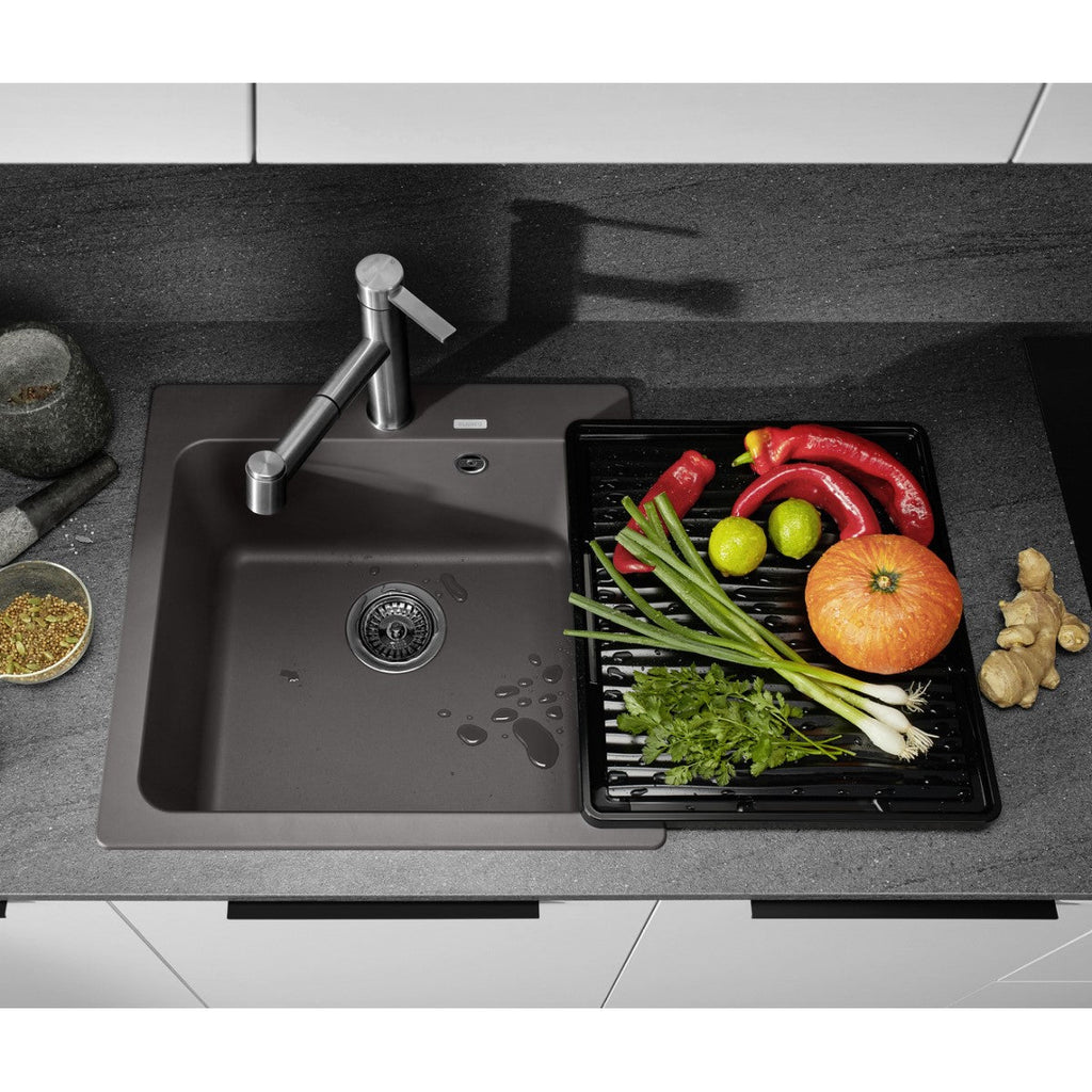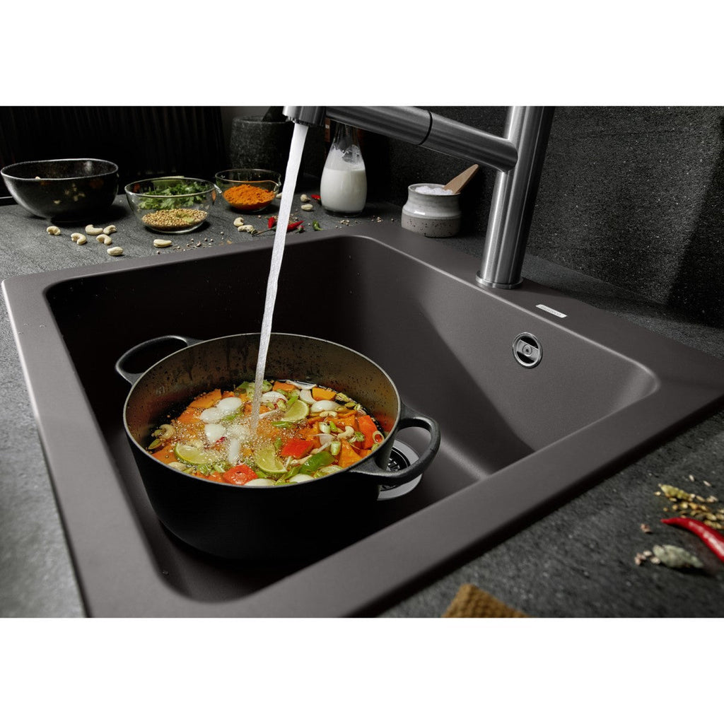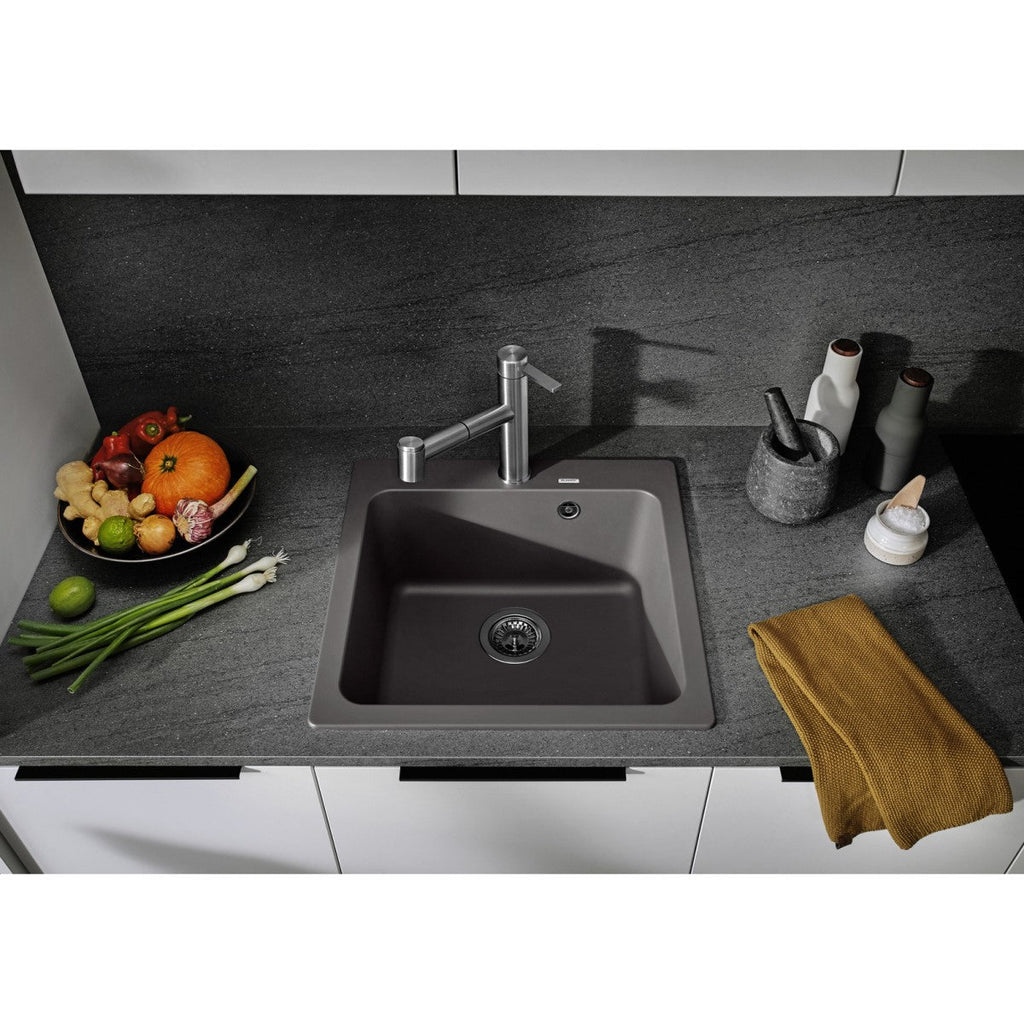 Enojno kuhinjsko pomivalno korito iz umetnega kamna (Silgranit® PuraDur® - 80% naravnega granita). Ustreza za vgradnjo v omarico 500 mm.