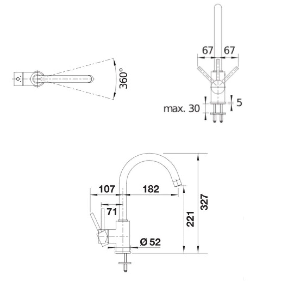 • Višina izliva - 221 mm