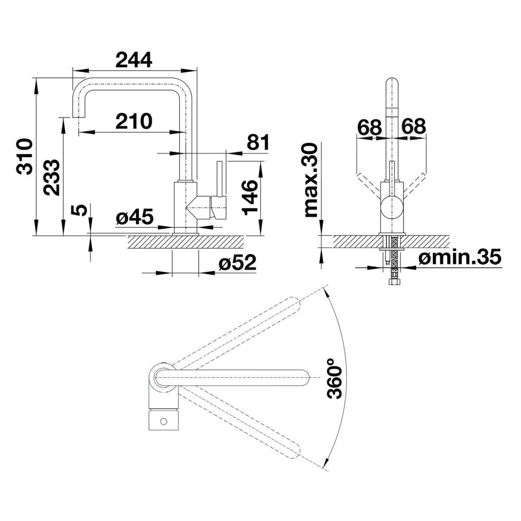 Visoka enoročna vrtljiva (do 360°) armatura za umivalnik, stoječa, z ročajem.