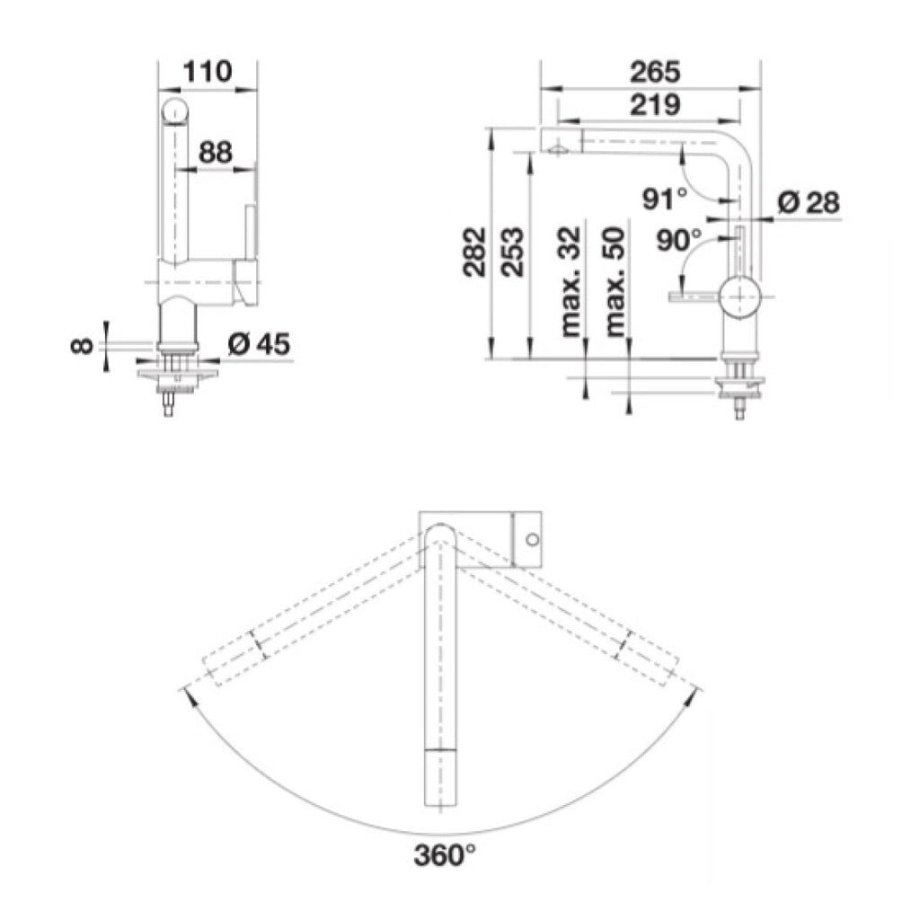 • Višina izliva - 253 mm