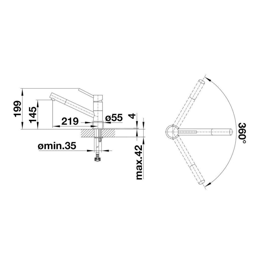 Enoročna vrtljiva (do 360°) armatura za umivalnik, stoječa, z ročajem.