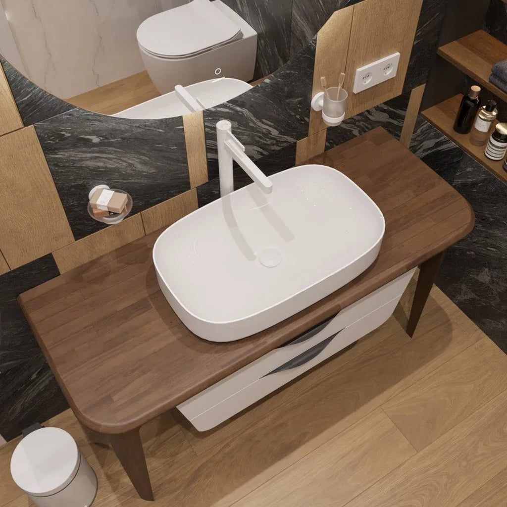 Visoka enoročna armatura za umivalnik z zgornjim delom sifona Click-Clack v kompletu.