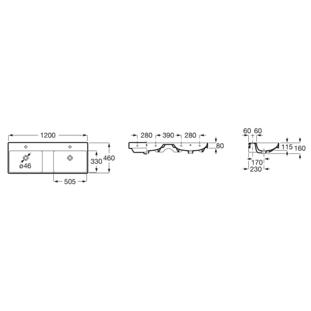 A32768B000 Roca ONA 120 x 46 cm dvojni keramični umivalnik z 2 odprtinama