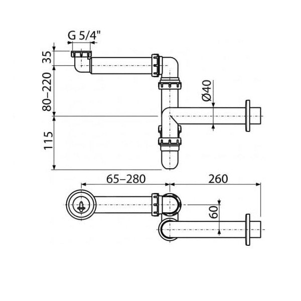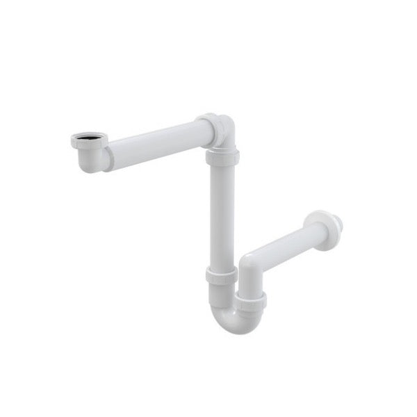 Spodnji del sifona za umivalnik z omarico. Širina in višina sta nastavljivi.