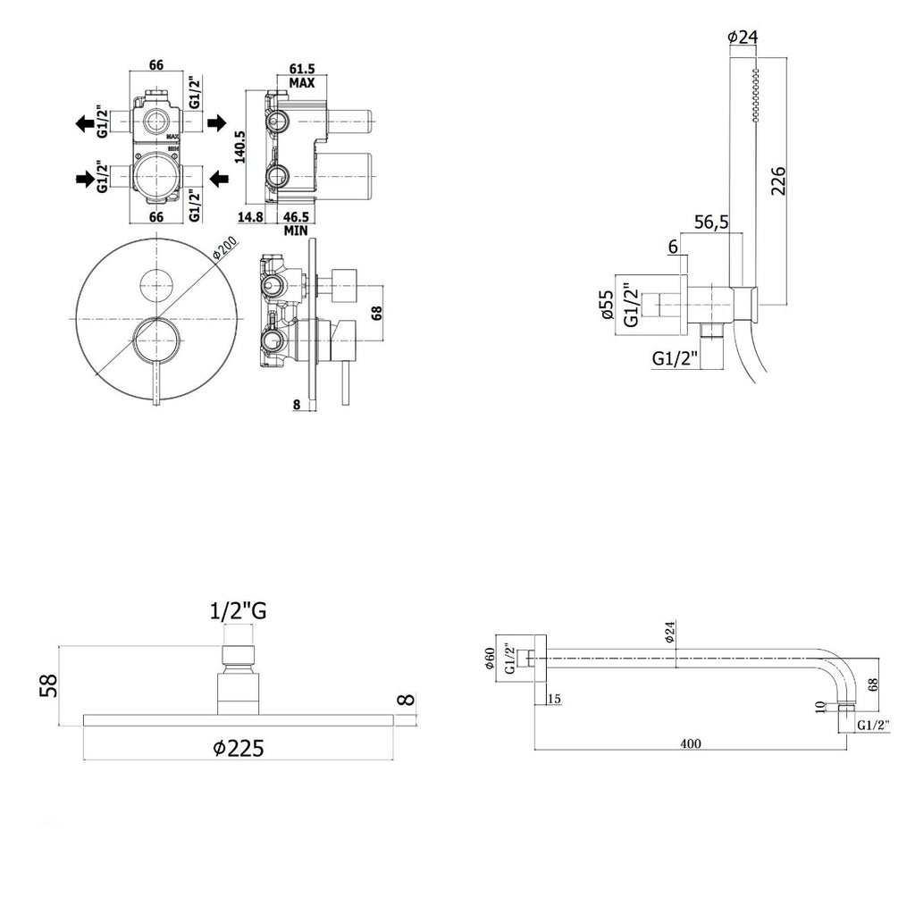 Podometni komplet za tuš s nadglavno prho ter tuš ročko s držalom.