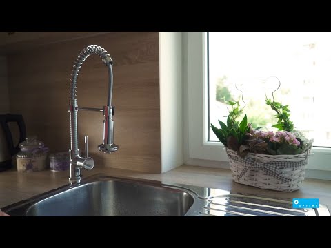 Visoka enoročna vrtljiva (do 360°) izvlečna armatura za kuhinjo, stoječa, z ročajem, brez zgornjega dela sifona.