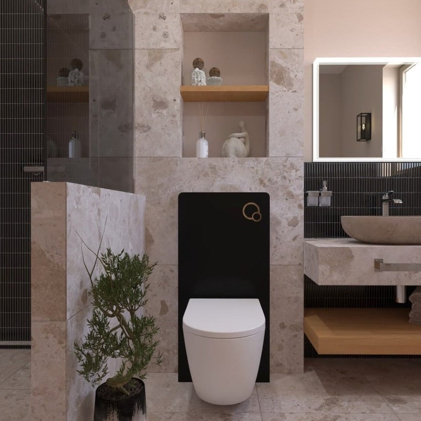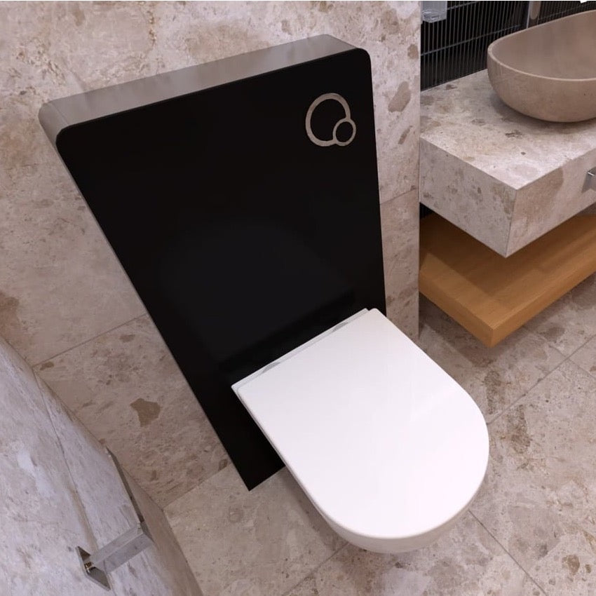 Sanitarni modul s prednjo ploščo iz varnega stekla v črni barvi je idealna rešitev za obnovitev kopalnice brez bistvenih oblikovnih sprememb. Sanitarni modul omogoča namestitev viseče WC-školjke brez poseganja v steno in brez pomoči strokovnjaka. Zaradi samostoječe konstrukcije ga je mogoče enostavno postaviti neposredno ob steno – hitro, čisto in brez kakršnegakoli rušenja. Montaža je izjemno preprosta: modul priključite na vodovod in odtok, pritrdite WC-školjko in sistem je pripravljen za uporabo.