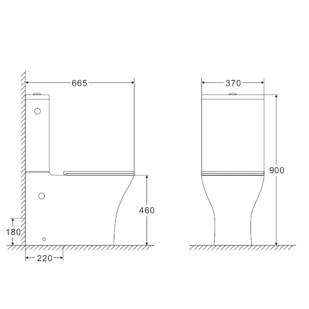 Talna stoječa brezrobna WC školjka monoblok z WC desko s počasnim zapiranjem "Soft Close". Višja izvedba - višina školjke z WC desko 480 mm.