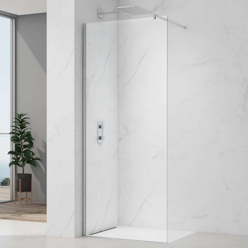 Steklena stena oz. odpta tuš kabina Walk-in s prozornim steklom in profili krom barve. Kaljeno varnostno prozorno steklo 6 mmEasyClean obdelavo proti nabiranju vodnega kamna. Walk-in tuš stena se lahko montira na tuš kad ali direktno na tla. Tuš kad ni zajeta v kompletu.