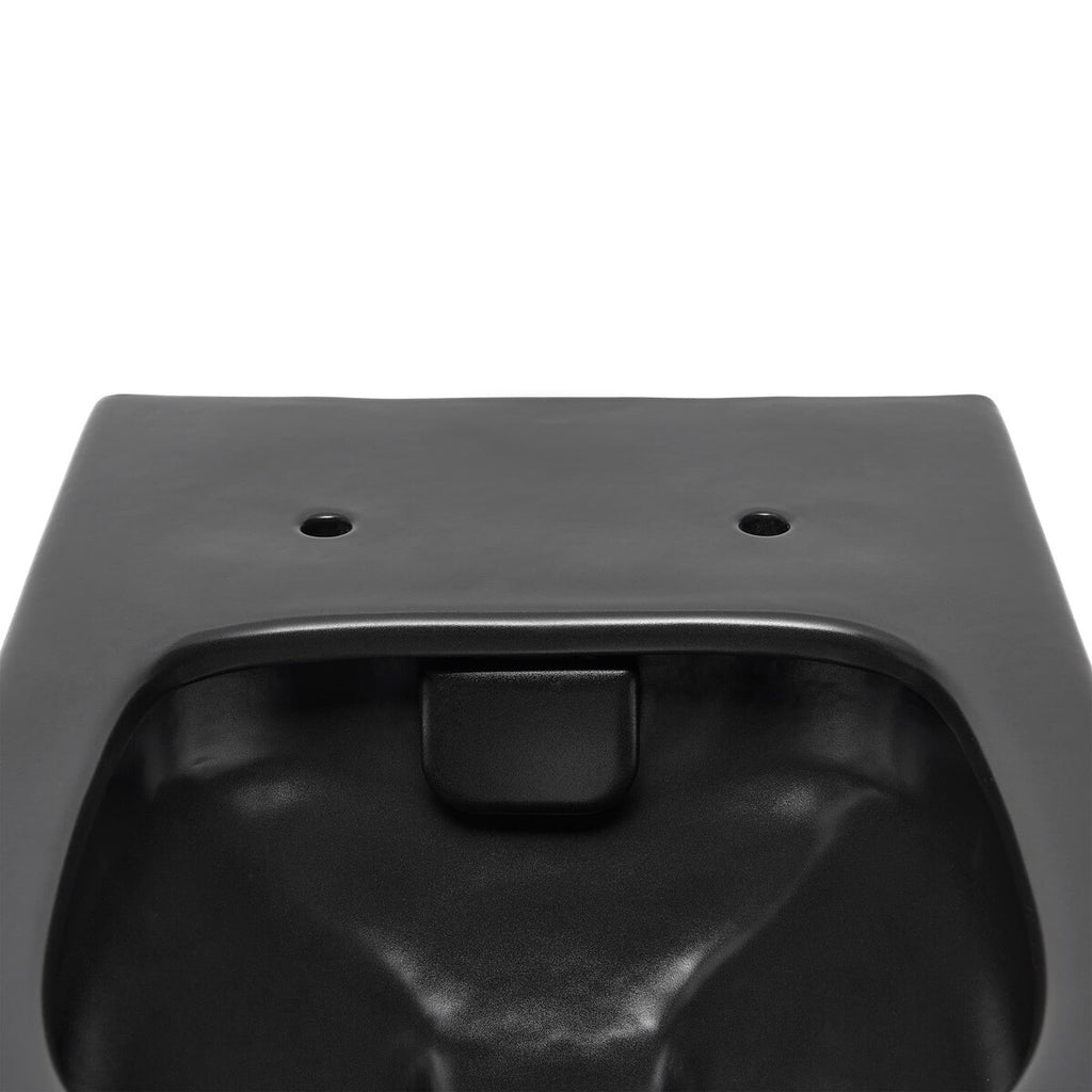 Viseča brezrobna WC školjka v črni barvi z mat zaključkom z WC desko s počasnim zapiranjem "Soft Close".