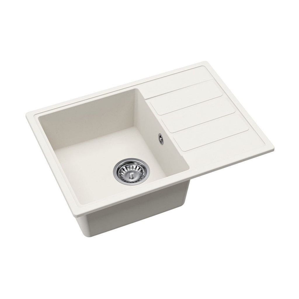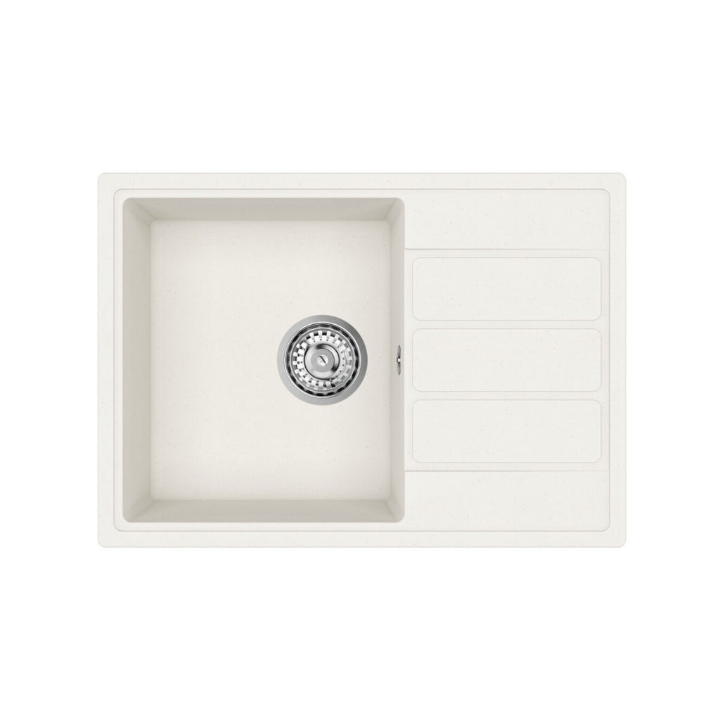 Enojno kuhinjsko pomivalno korito iz umetnega granita (80% kremenčevega peska). Primerno za vgradnjo v omarico širine 45 cm.