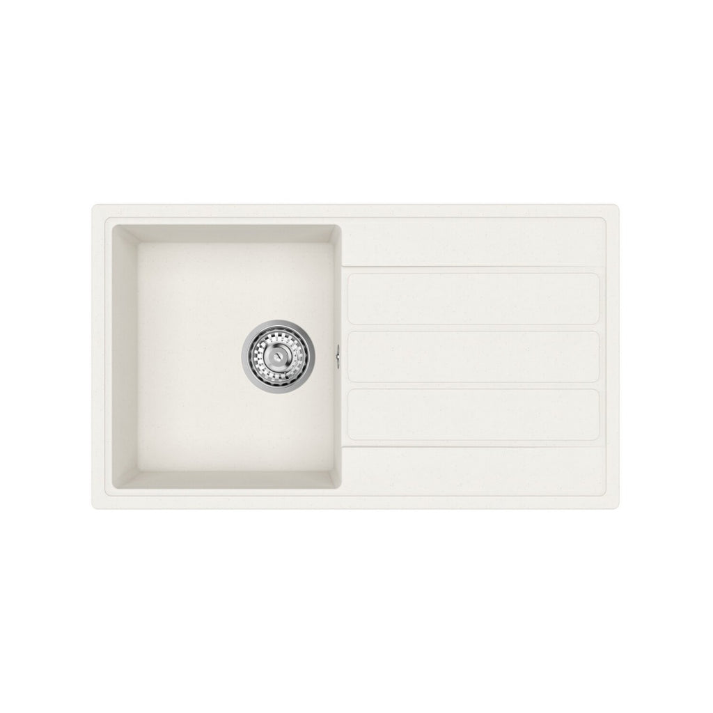 Enojno kuhinjsko pomivalno korito iz umetnega granita (80% kremenčevega peska). Primerno za vgradnjo v omarico širine 45 cm.