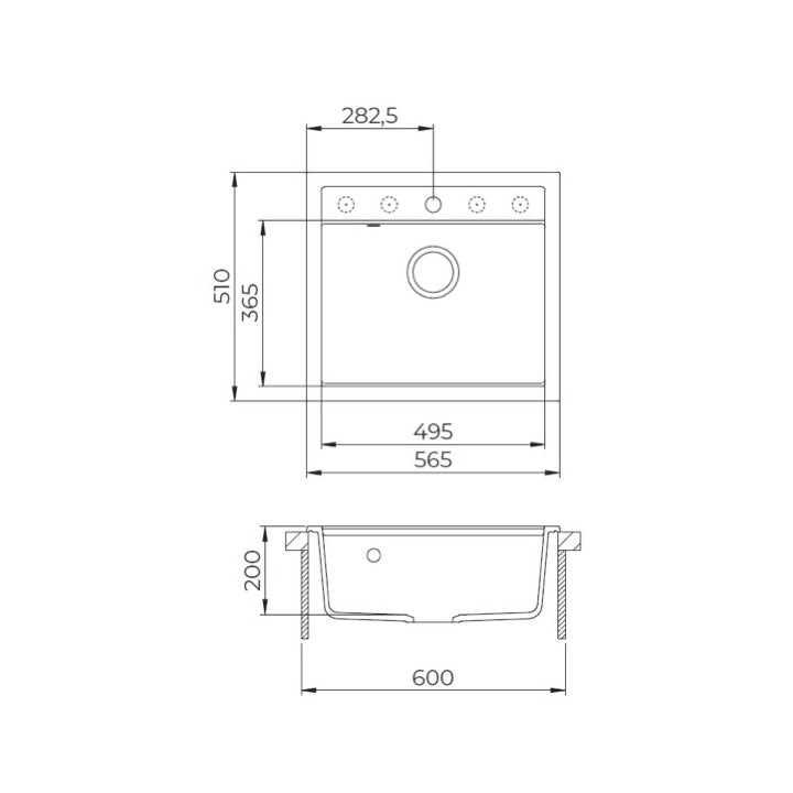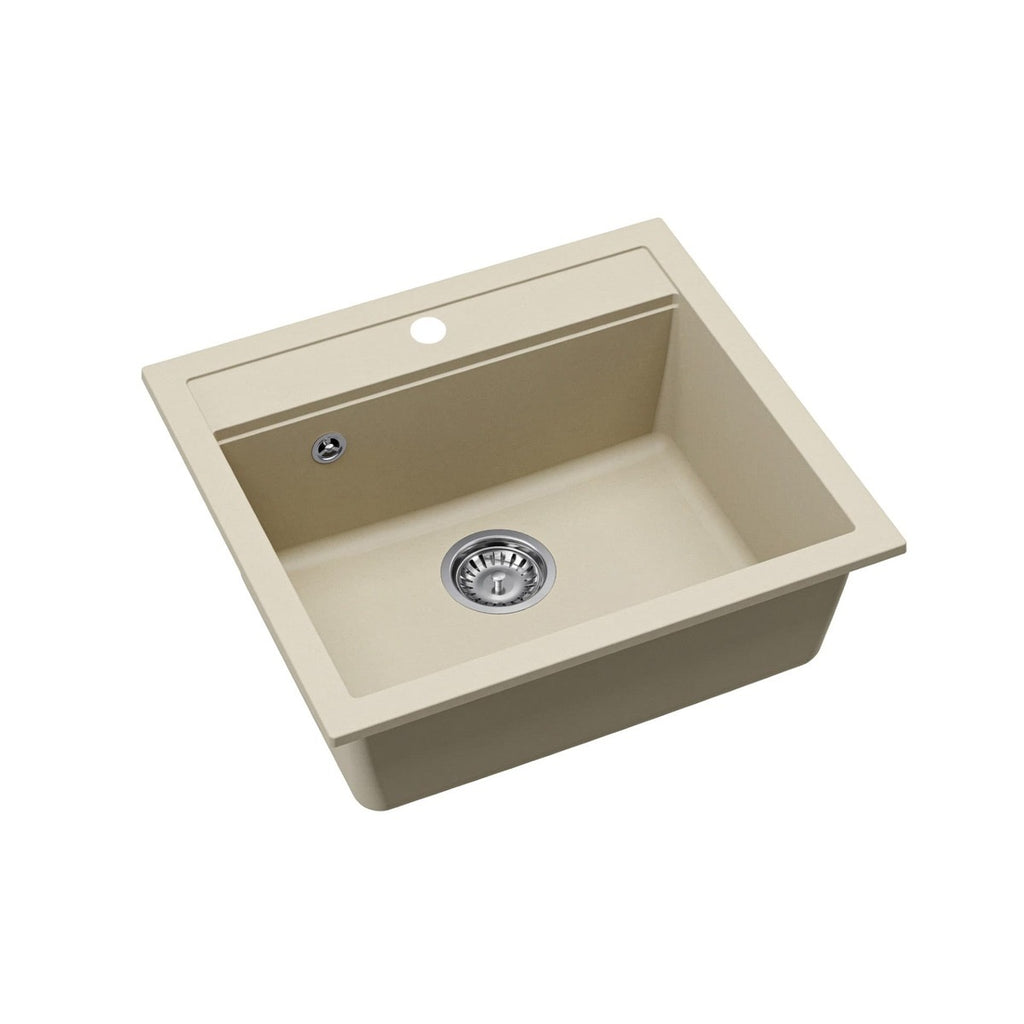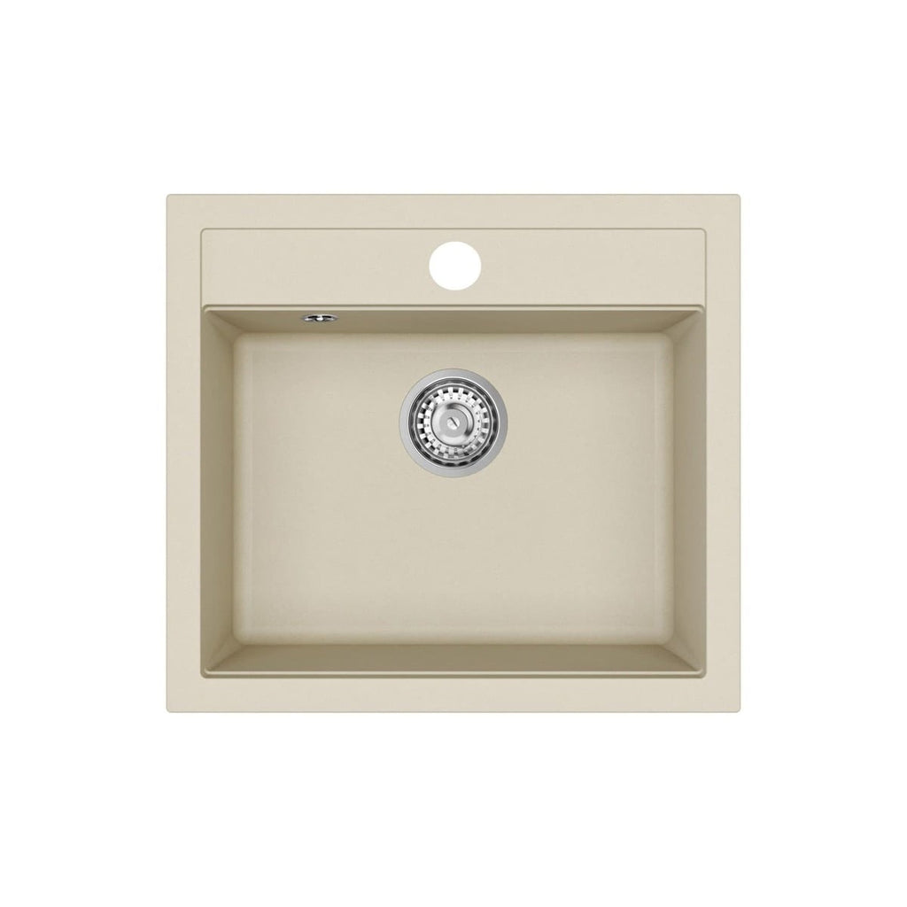 Enojno kuhinjsko pomivalno korito iz umetnega granita (80% kremenčevega peska). Primerno za vgradnjo v omarico širine 60 cm.