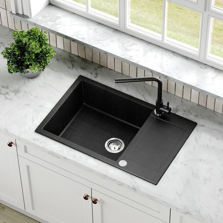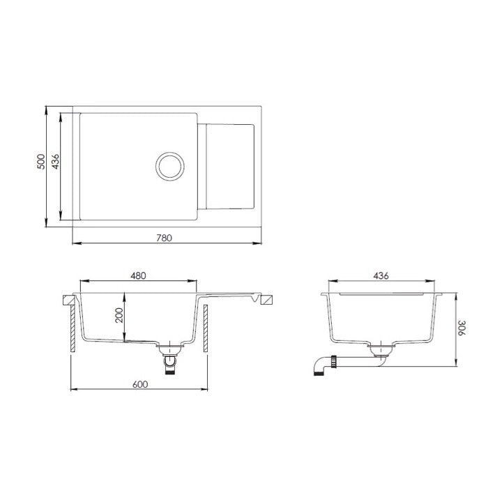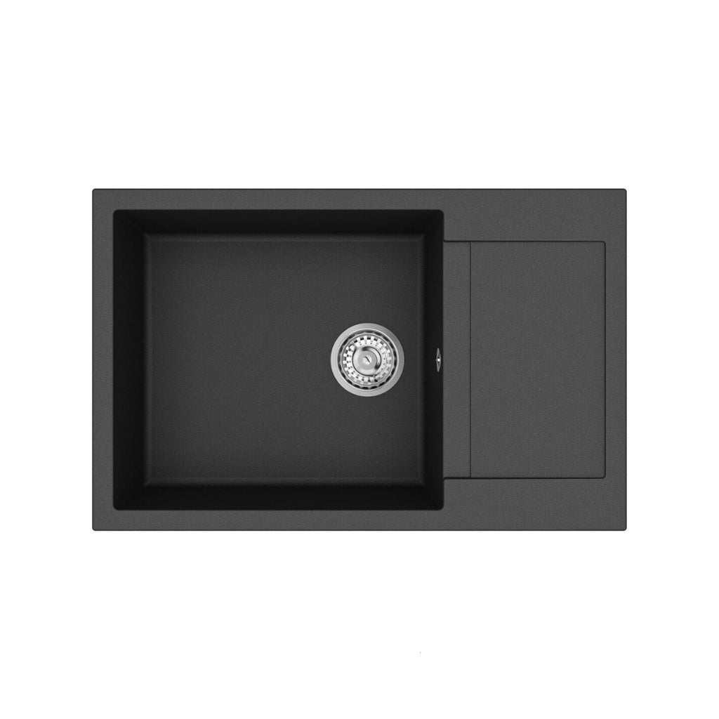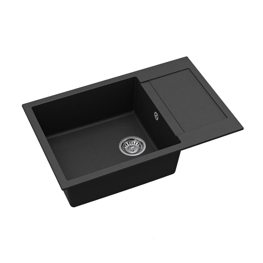 Enojno kuhinjsko pomivalno korito iz umetnega granita (80% kremenčevega peska). Primerno za vgradnjo v omarico širine 60 cm.