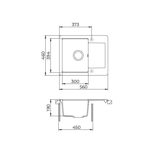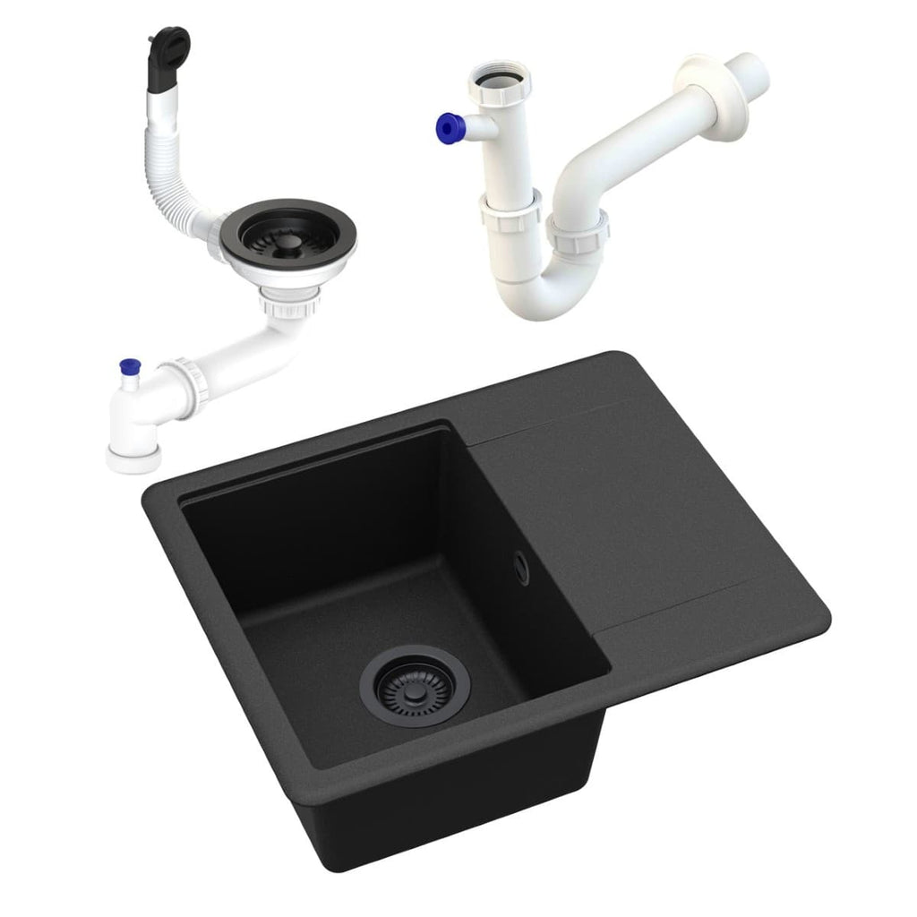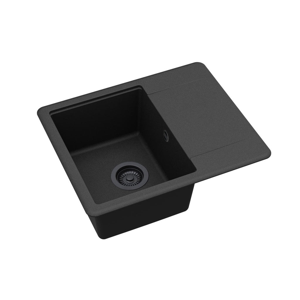 Enojno kuhinjsko pomivalno korito iz umetnega granita (80% kremenčevega peska). Primerno za vgradnjo v omarico širine 60 cm.