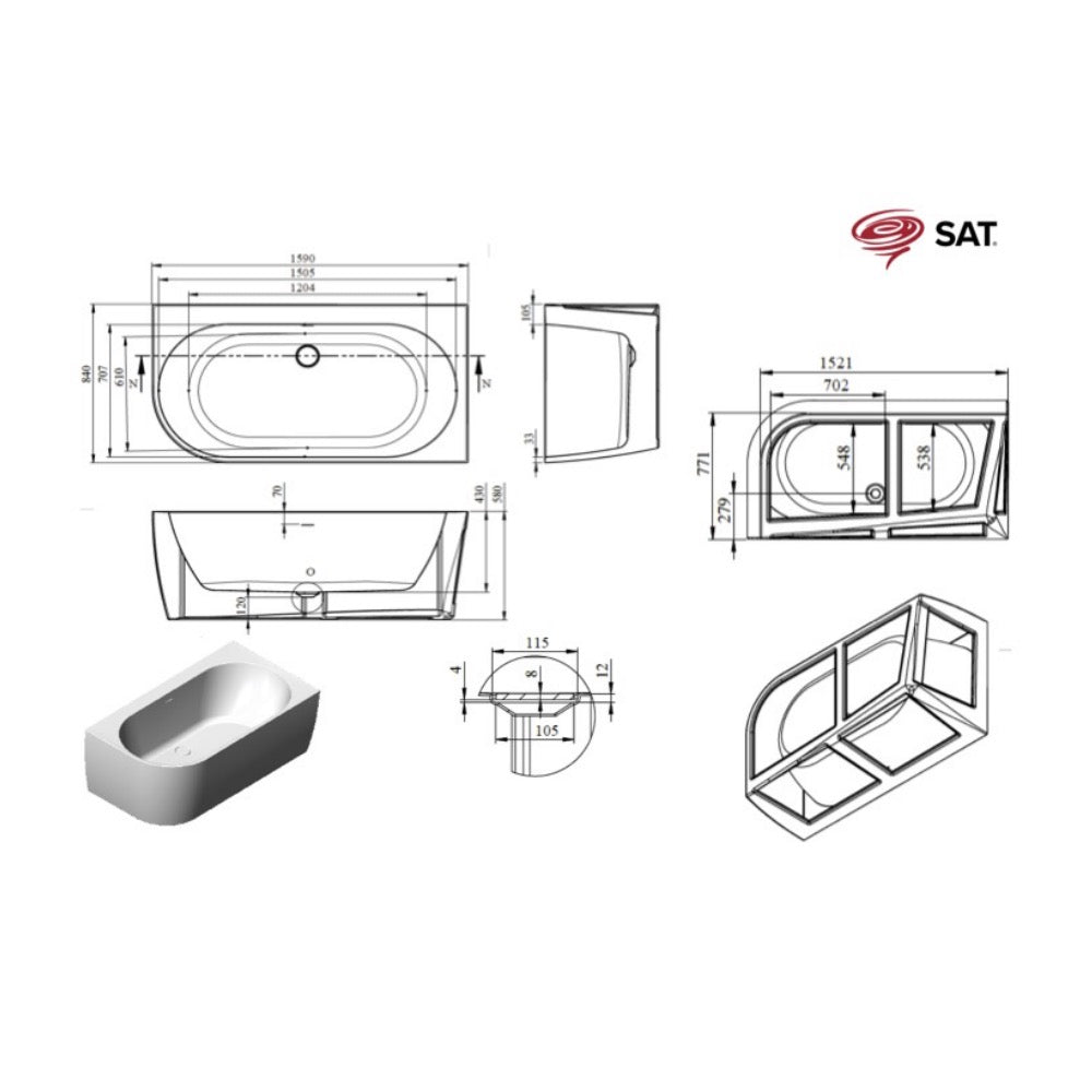 SATVBRE1600P SAT Brevis prostostoječa kopalna kad iz akrila