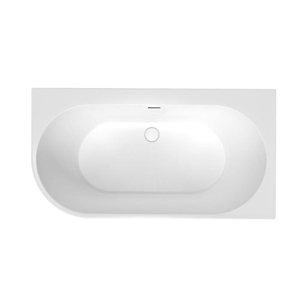 Samostoječa kotna kopalna kad (265 l.). Desna izvedba. Komplet zajema sifon "click-clack" bele banve in podnožje.
